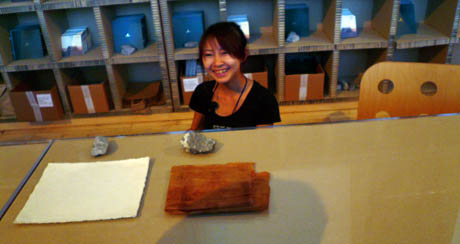 カウンターでスタッフに尋ねてみると、実際の和紙のサンプルを触らせもらえた。