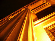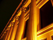 ただ円柱はあるけど、コリドーにはなっていない。要は単なる飾りなのです。 昼間は大して目立たないけど、夜になるとライトアップされて立体感が増して、柱天の装飾の陰影が美しい。