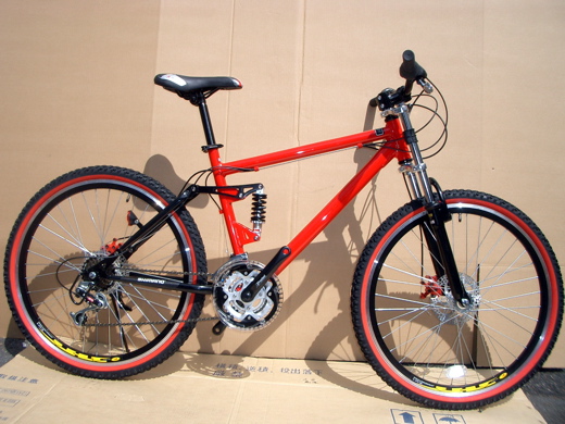 色は明るいオレンジ。そこだけがこだわったポイント。それで友人に選んでもらって買ったのがコレ。いわゆるWサスペンションMTBです。