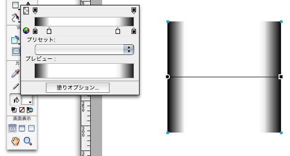 Fireworksのグラデーションツールはデフォルトでは横方向なってしまう。縦方向のグラデーションにするには、ハンドルをえいっと縦に回転させるひと手間が必要で、このひと手間が以外と面倒なわけ。