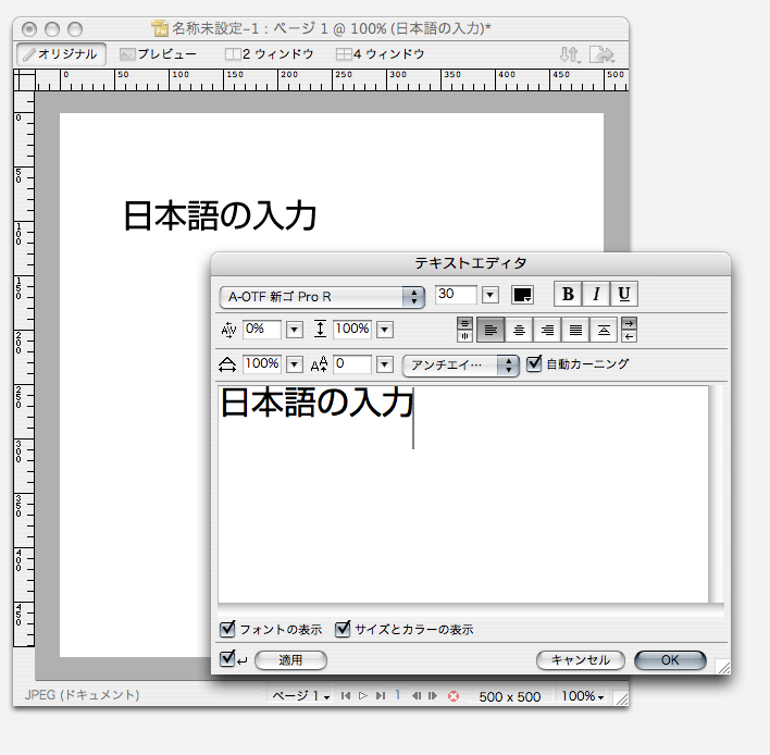 Fireworks 4以降、テキストブロックが大きい場合やフォントサイズのせいでテキストが読みにくい場合などに便利なテキストエティタが備わっています。