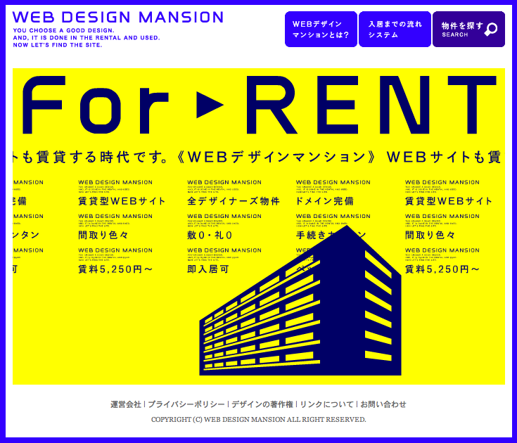 WEBデザインマンションの背景に迫るブログもあってたのもしいです。入居中は同じデザインは他の人は使えないので、同じデザインに偶然遭遇されてしまう危険もないわけです。